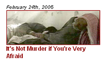 UPDATE* Thanks to Necropenguin, who pulled the cached web page from Moore which actually states “It’s Not murder if You’re Very Afraid”, which I was forced to misquote (afraid, not scared) from memory earlier because Moore pulled the headline.