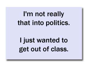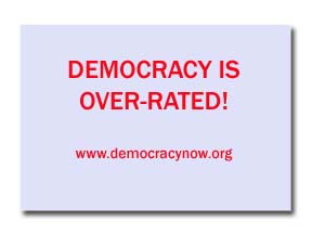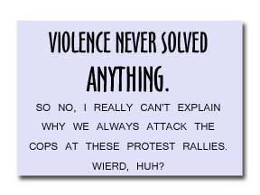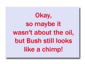 Maybe they’re doing it wrong? Or maybe, they’re using the wrong posters-on-a-stick. After seeing 50 gazillion different incarnations of the Bush=Hitler motif, perhaps it’s time to abandon that concept and try something new.